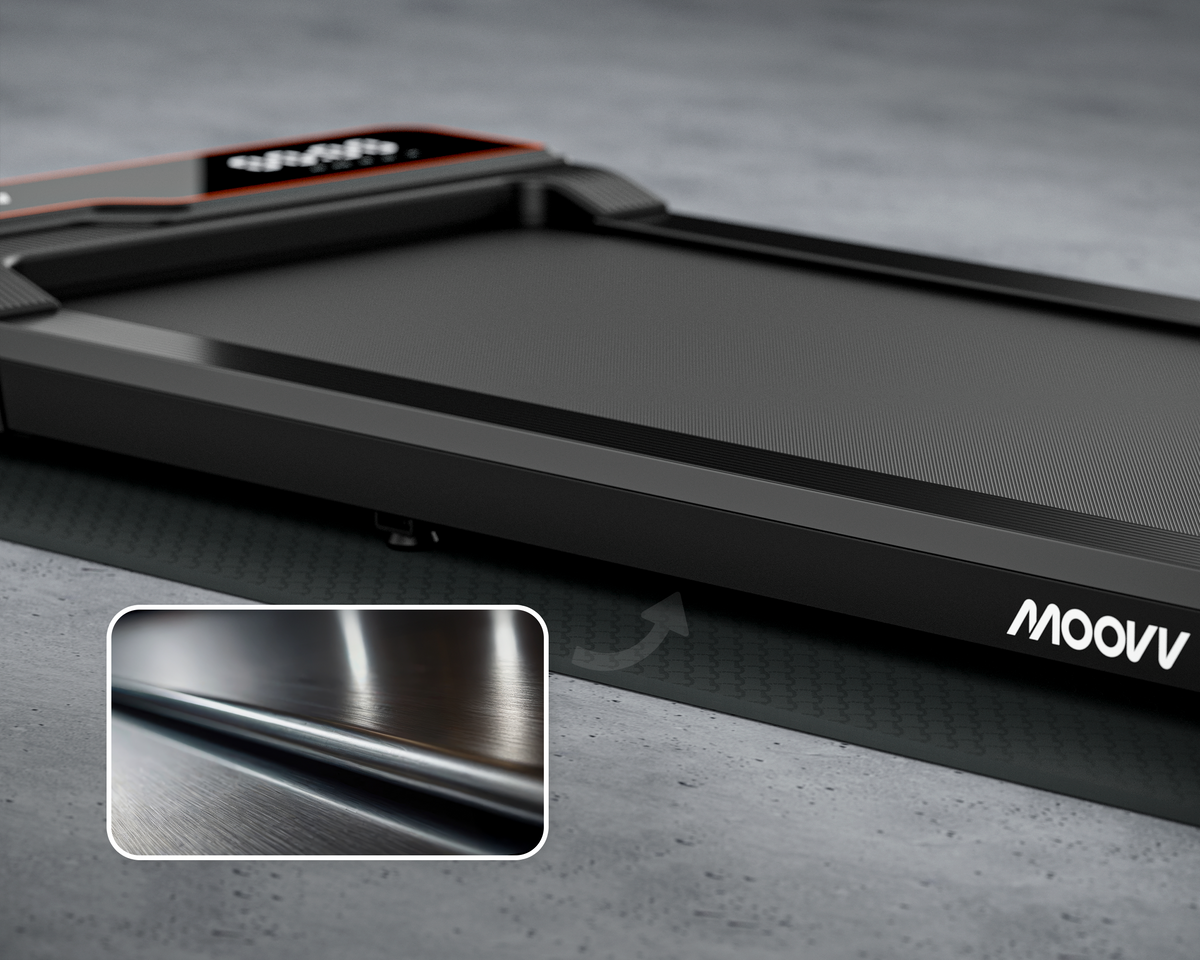 Das Moovv-Laufband besteht aus stabilem Carbonstahl und bietet dadurch maximale Haltbarkeit und Zuverlässigkeit – selbst bei täglicher Nutzung.